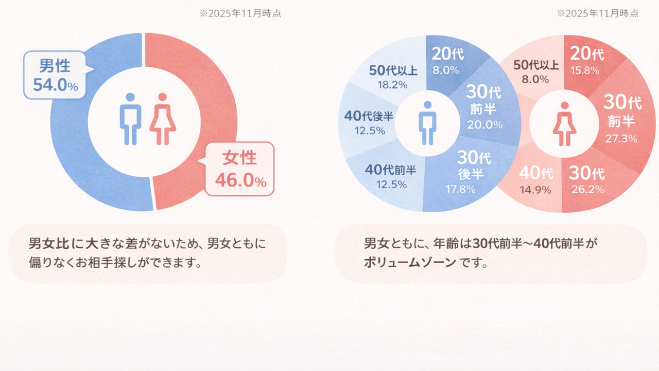 最大級のネットワークで多くの出会いを提供します!安心安全のお見合いを毎月ご提供する「IBJ」では、どのような方々が婚活をしているのか、入会者数・年齢層・成婚者数などのデータをまとめました。